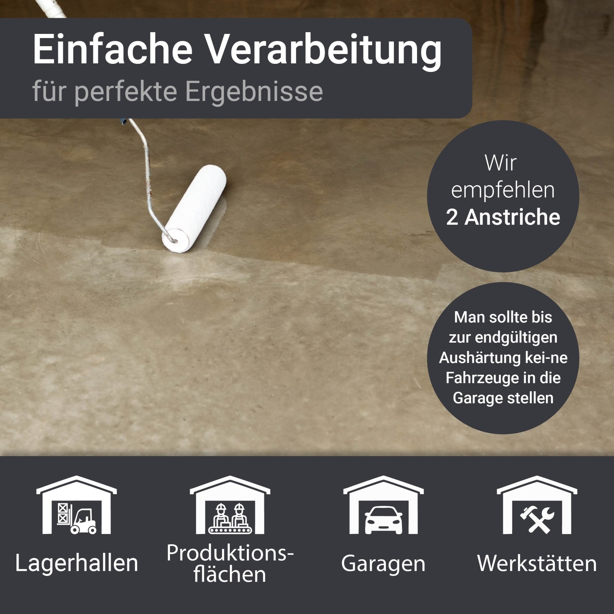 • Ideal as a garage coating for mineral surfaces e.g. concrete, cement, screed.