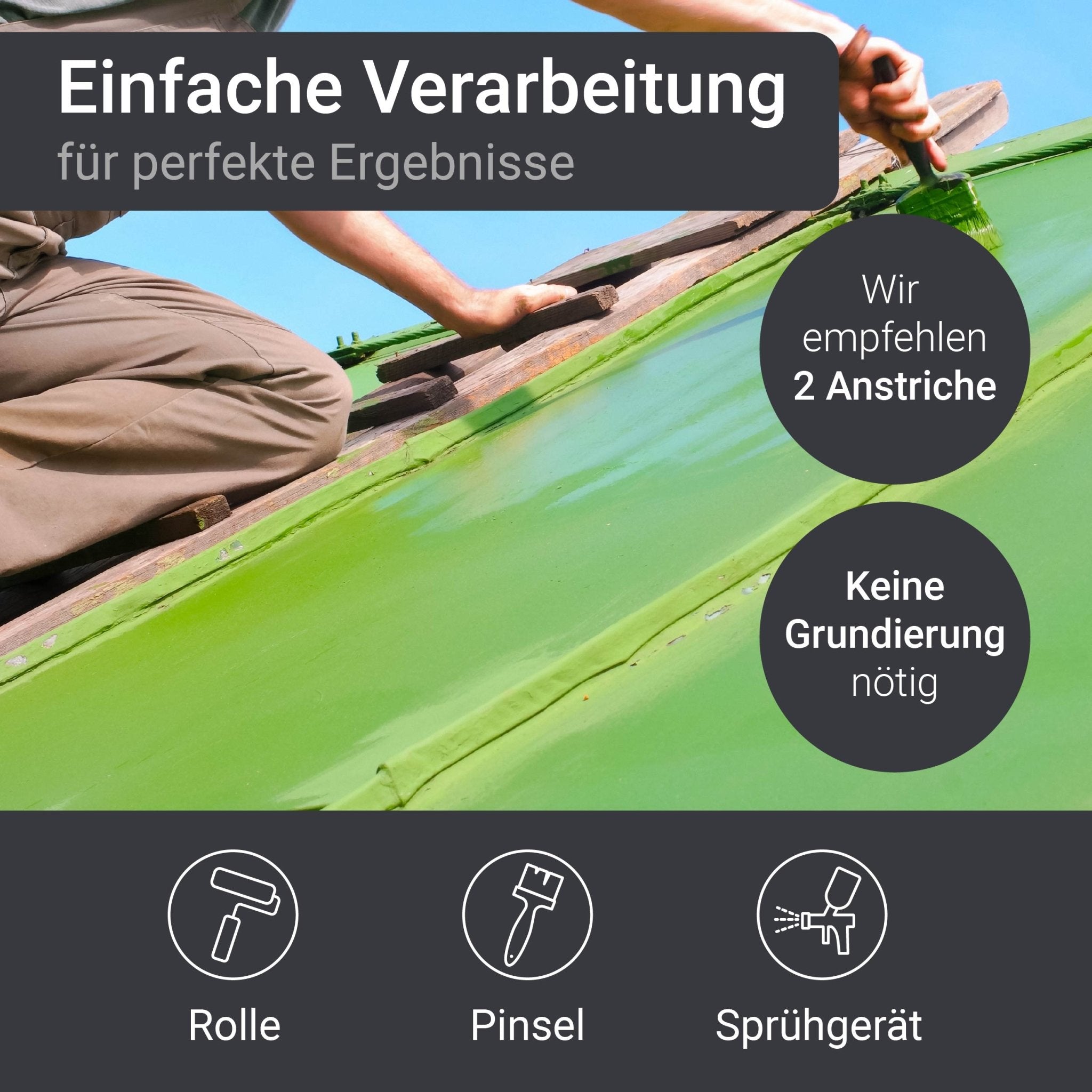 • Pintura para tejados en base disolvente para chapa galvanizada, tejados metálicos, tejados de chapa, etc.