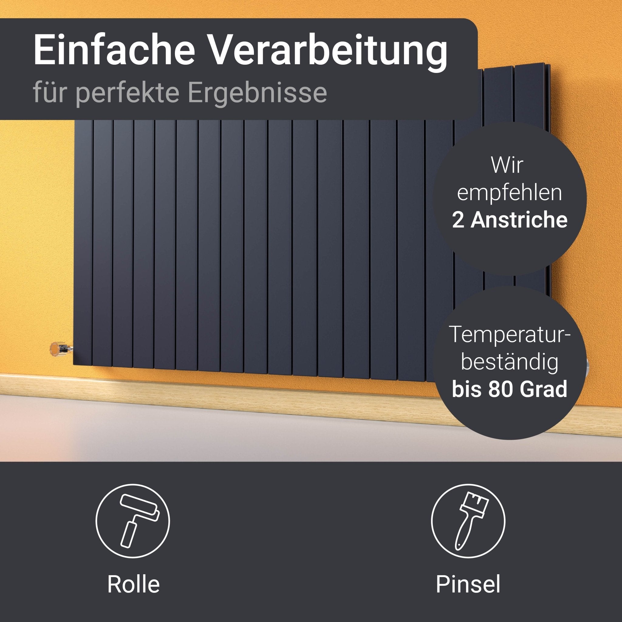 La pintura para radiadores es adecuada para pinturas resistentes al desgaste en radiadores y tuberías. Pintura de secado rápido con alta resistencia al calor. Muy buena resistencia al amarilleo y cobertura de los bordes fiable gracias a los pigmentos de alta calidad.